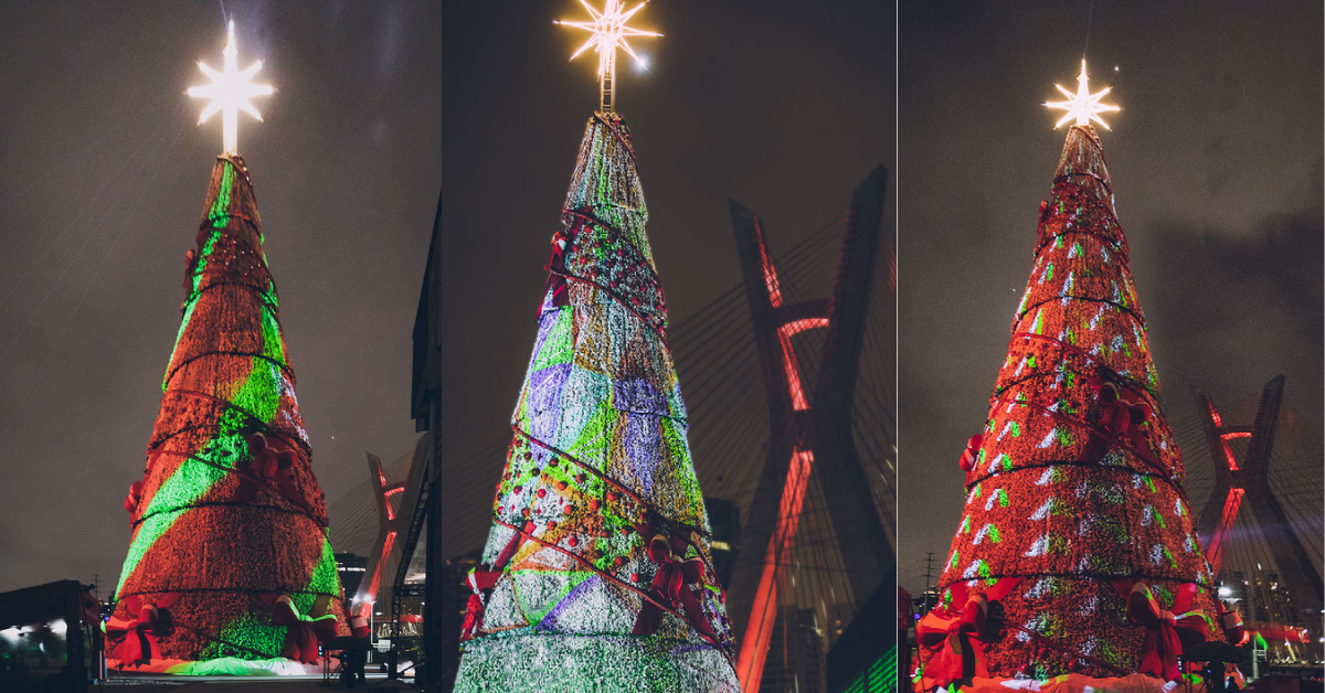Além das dimensões impressionantes, a árvore de Natal de SP recebe projeções noturnas em alta resolução e em 360 graus. É um verdadeiro show de luzes!